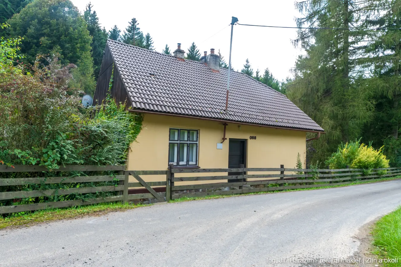 Příjezd k chatě je zajištěn obecní komunikací. Parkování je zajištěno na pozemku i před ní.